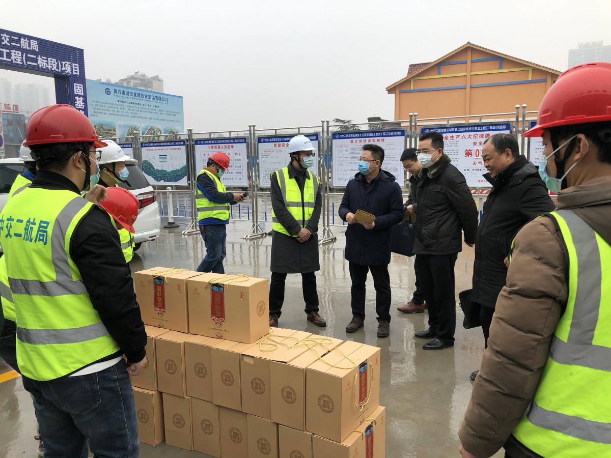 在有軌電車等一線項目工地,集團領導為春節值守人員送上慰問金和慰問物資,親切詢問項目工地春節期間工作、生活安排情況,叮囑留黃過年農民工注意安全生產和疫情防控,并向奮戰在建設一線的勞動者們表示衷心感謝。