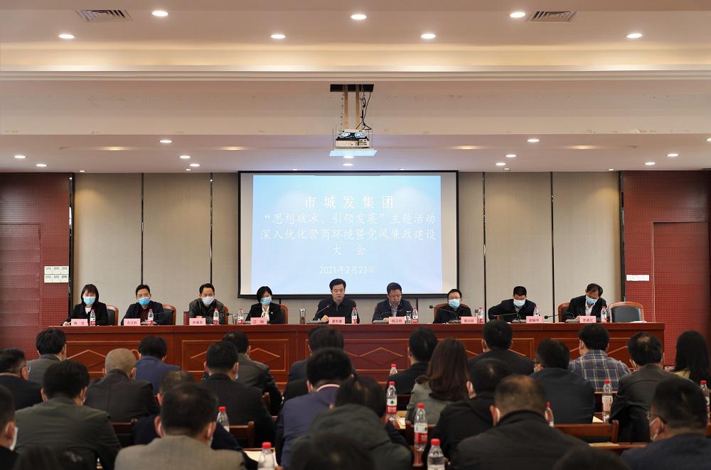 2月23日下午,市城發集團召開“思想破冰、引領發展”主題活動深入優化營商環境暨黨風廉政建設大會。集團公司黨委書記、董事長潘憲章出席會議并講話,集團公司黨委副書記、總經理程正棟主持會議。