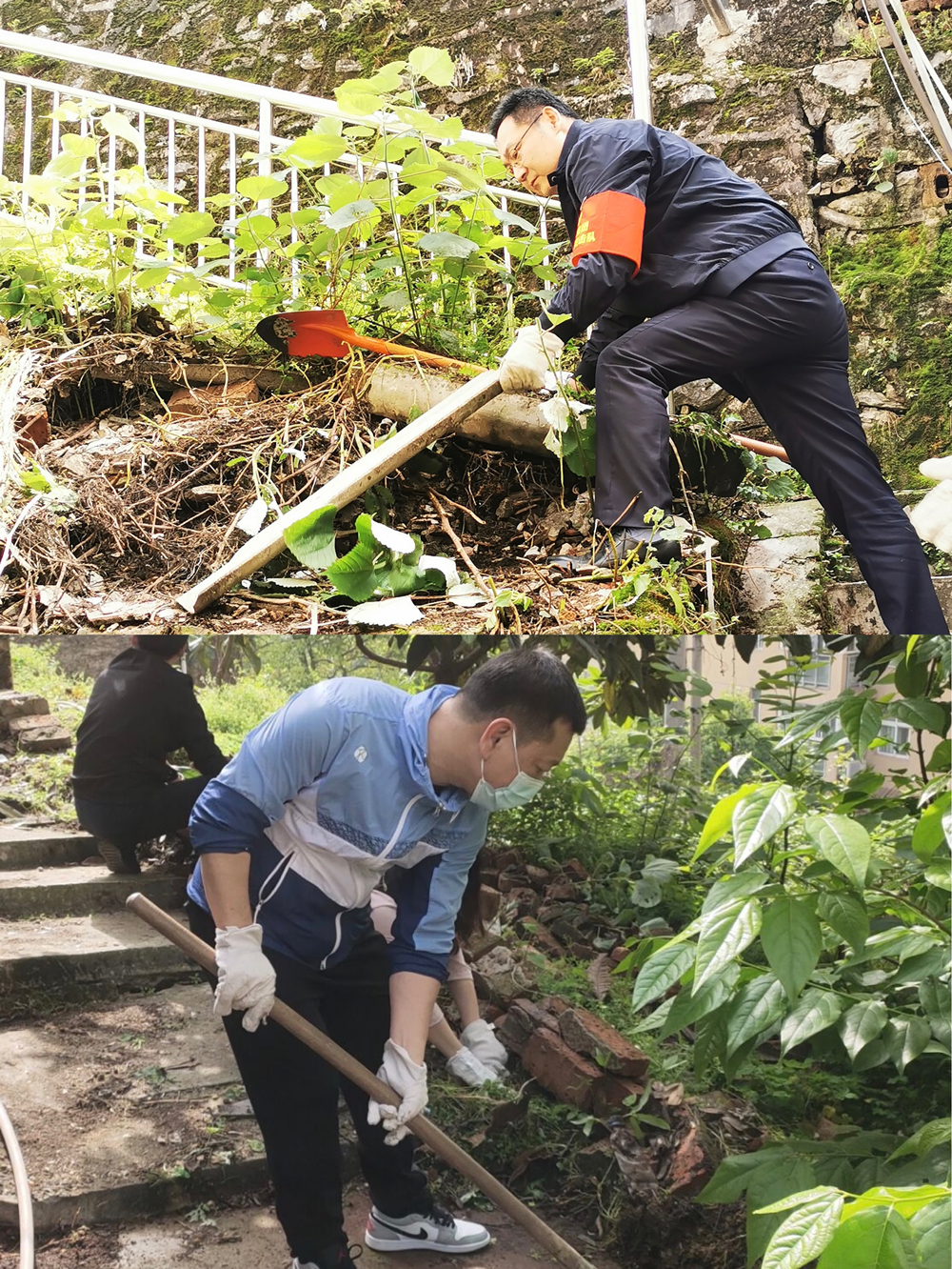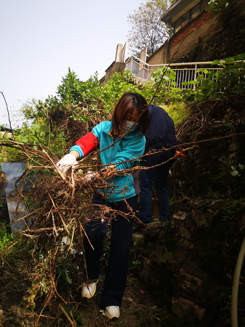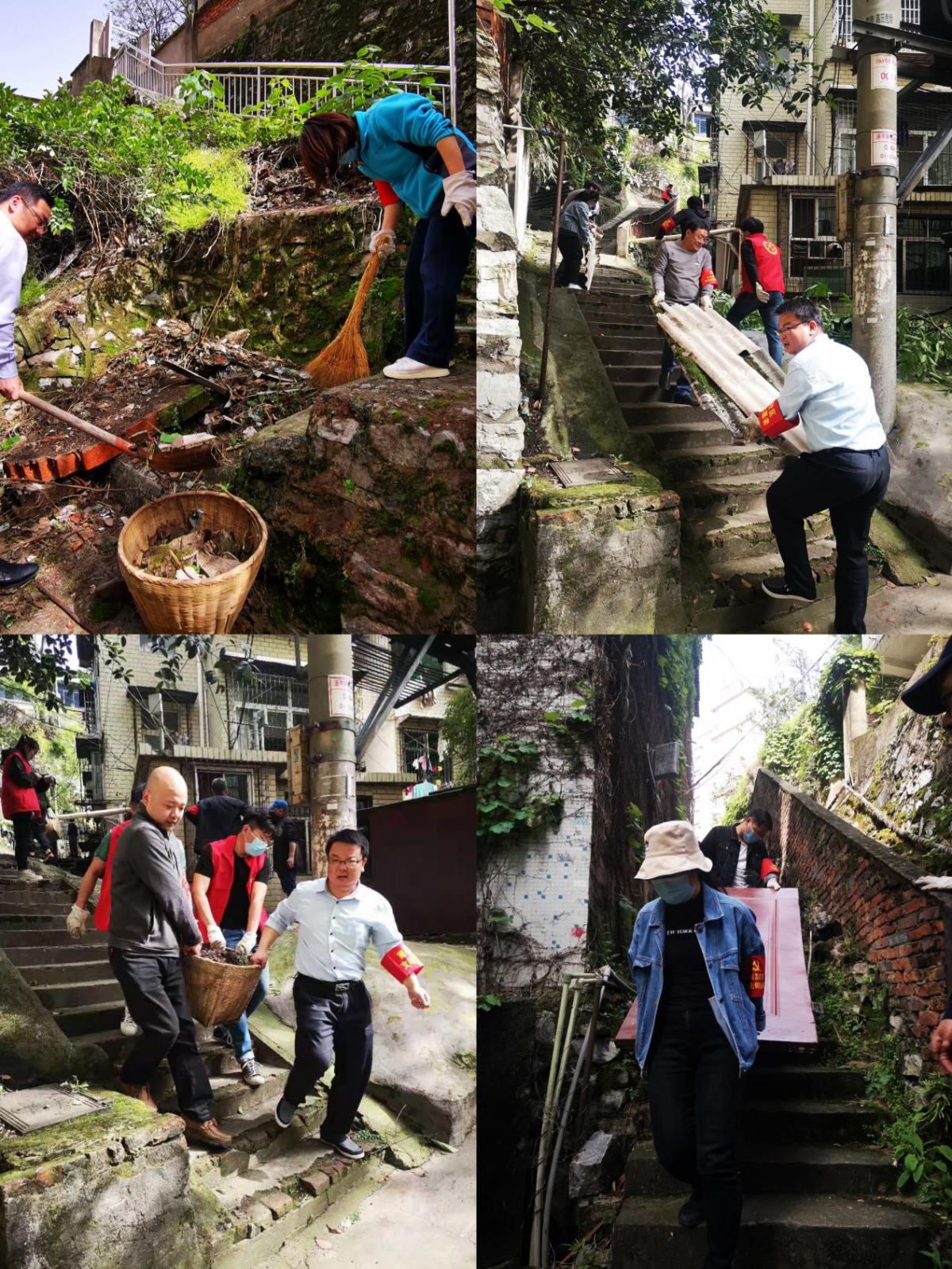 此次活動,志愿者們主要負(fù)責(zé)對依山而建的公共小路、拐彎死角等進(jìn)行建筑垃圾及雜草清理。在社區(qū)工作人員的引導(dǎo)下,志愿者們分工協(xié)作,男同志們負(fù)責(zé)清理建筑垃圾,女同志們負(fù)責(zé)清除雜草、青苔及生活垃圾。山間的樓梯小路因?yàn)樘栖嚐o法上去,志愿者們只能一鍬一鏟地把碎石、渣土等垃圾裝進(jìn)竹簍里,再一簍一簍抬下山。為了徹底清理墻體上的青苔,志愿者們用雙手將青苔一點(diǎn)一點(diǎn)扒下來,夠不著的高處,就用鐮刀一點(diǎn)一點(diǎn)把青苔刮下來,只要肉眼可見的垃圾,都是大家的清理目標(biāo)。