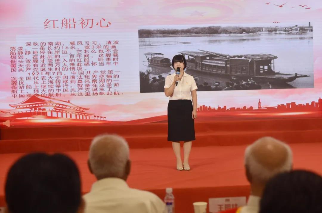 來自城發檢測公司的劉桂則,通過講述南湖紅船與共產黨的故事,分享《建黨偉業》電影節選,將大會帶回中國共產黨成立之初的壯闊歷史中,共同感悟中國共產黨的百年奮斗之路和城發人推進綠色發展的初心使命。