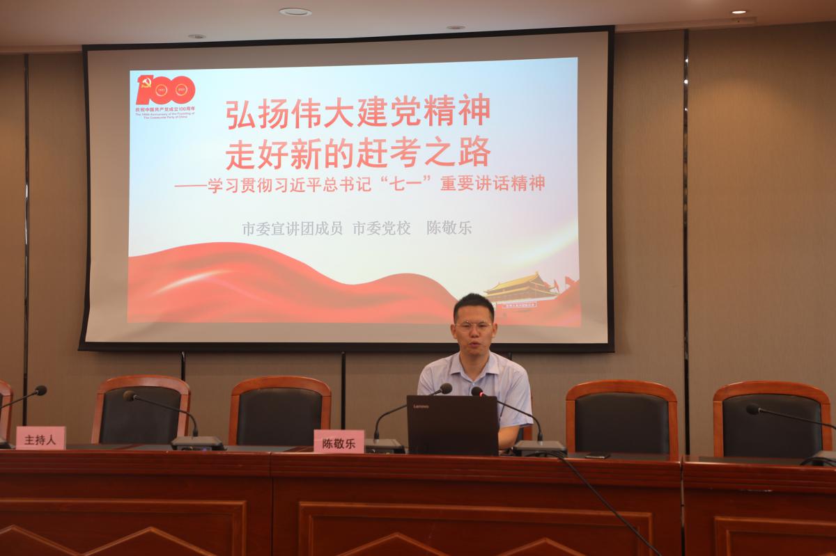 8月27日下午,城發集團舉行學習貫徹習近平總書記“七一”重要講話精神宣講會。在宣講會上,市委宣講團成員、市委黨校講師陳敬樂作了題為《發揚偉大建黨精神、走好新時代趕考路》的宣講。