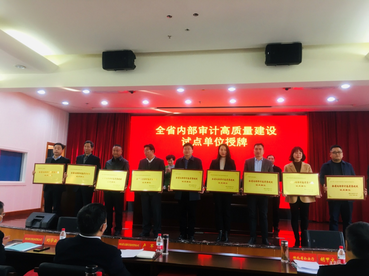 12月7日,湖北省審計廳舉辦2021年度全省內部審計工作培訓班,副廳長湯漢琴、法規審理處處長劉明亮為全省20家內部審計高質量建設試點單位授牌。集團獲評湖北省內部審計高質量建設試點單位,據悉在地市州同類平臺中,僅黃石市和荊州市兩家企業入圍。會上宣讀了審計廳《關于組建湖北省內部審計人才庫的決定》,集團法務審計部李曉倩、陳肯、城發置業公司嚴茂林等3人被聘為湖北省內部審計人才庫專家成員。