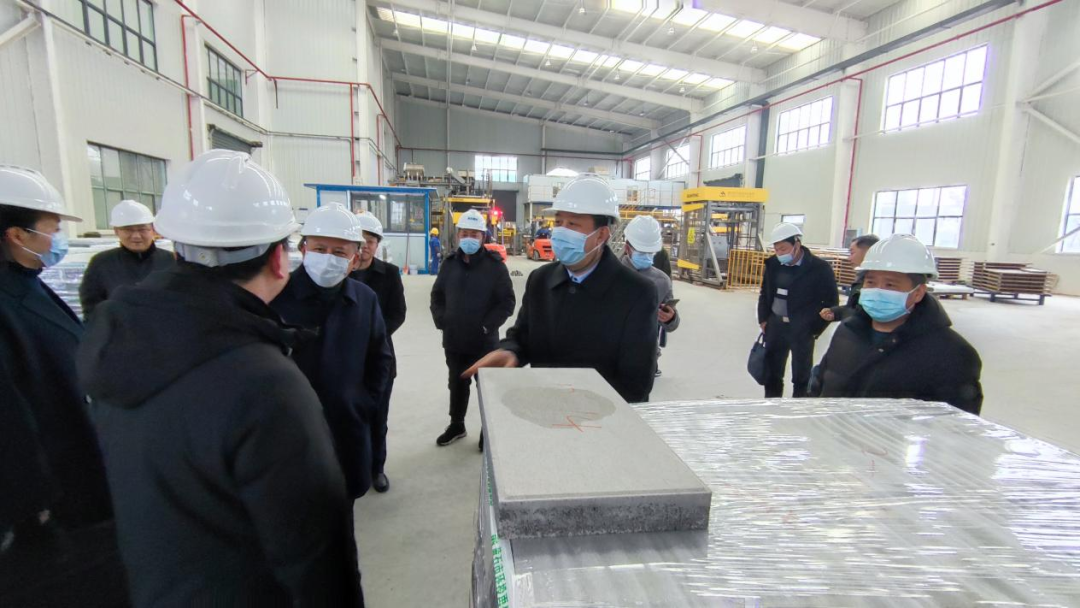 王新華一行深入再生建材公司破碎篩分車間、制磚車間、大件垃圾車間、成品堆放區等生產現場,實地察看建筑垃圾處理運行情況,了解再生建材公司的產品特點用途以及生產經營中存在的問題。