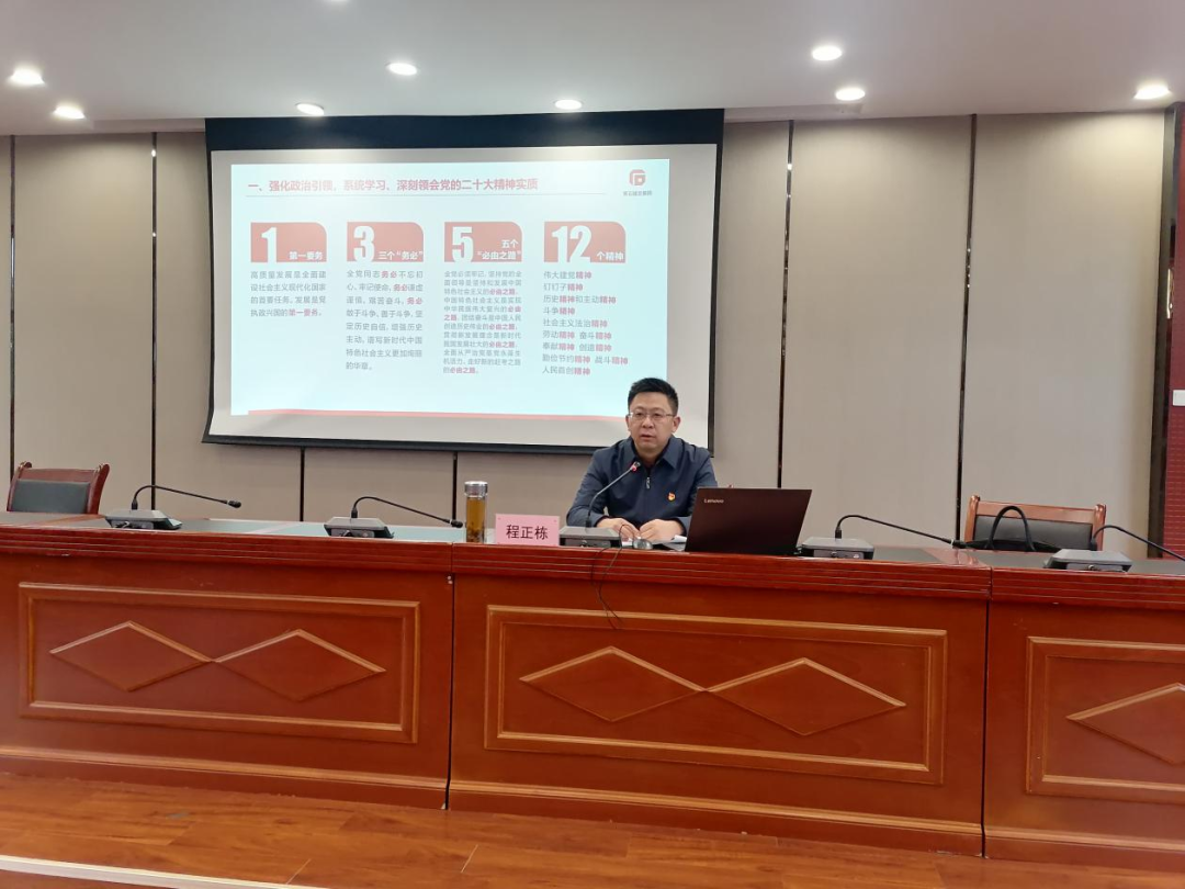 集團(tuán)黨委書(shū)記、董事長(zhǎng)程正棟以《學(xué)習(xí)二十大精神,錨定千百十目標(biāo),奮力開(kāi)創(chuàng)“五個(gè)城發(fā)”建設(shè)新局面》為題講授專(zhuān)題黨課,從“強(qiáng)化政治引領(lǐng),系統(tǒng)學(xué)習(xí)、深刻領(lǐng)會(huì)黨的二十大精神實(shí)質(zhì);強(qiáng)化目標(biāo)導(dǎo)向,持續(xù)推進(jìn)中國(guó)式現(xiàn)代化背景下的國(guó)企改革;強(qiáng)化知行合一,堅(jiān)決推動(dòng)黨的二十大精神在黃石城發(fā)落地見(jiàn)效”三個(gè)方面作了深入輔導(dǎo)。