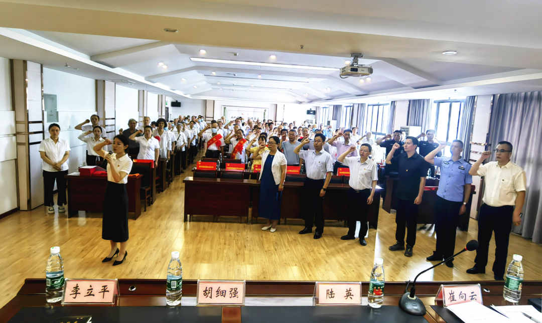 南岳社區(qū)大黨委100余名黨員干部重溫入黨誓詞,面對黨旗莊嚴宣誓,雄壯有力的宣誓聲,久久激蕩在每位黨員干部的心中。