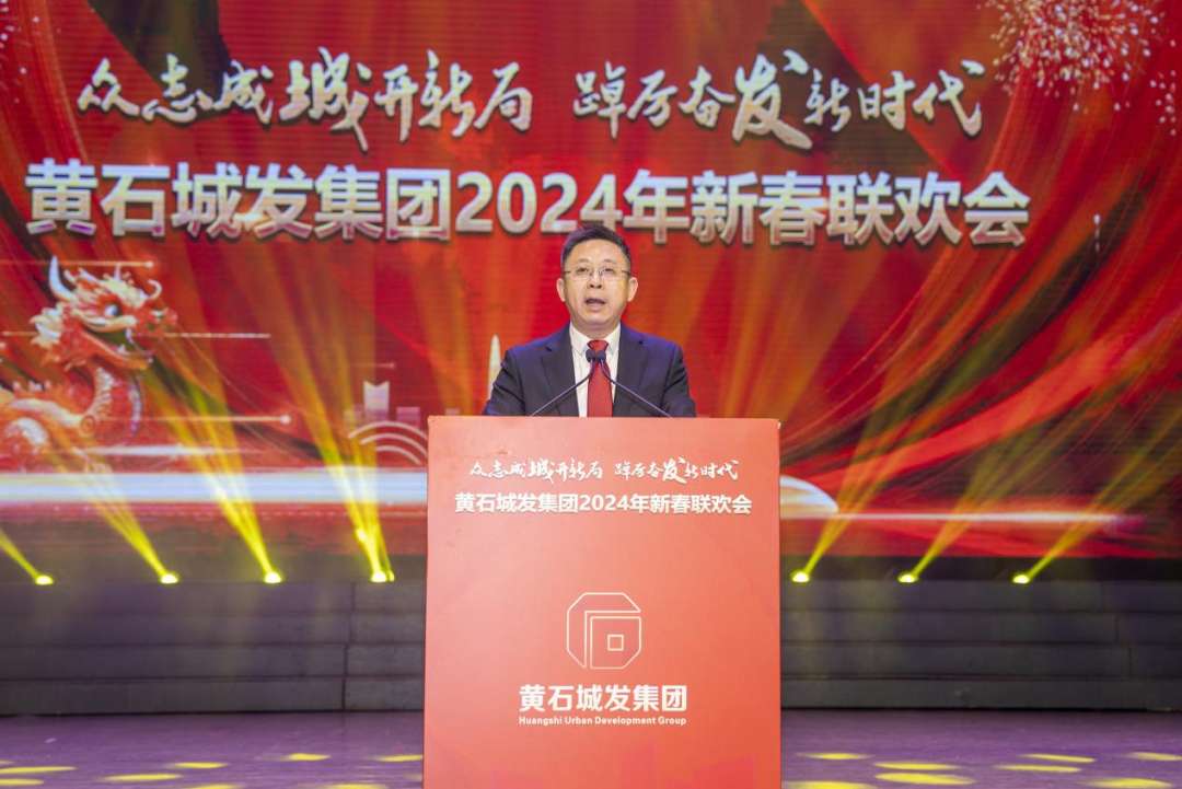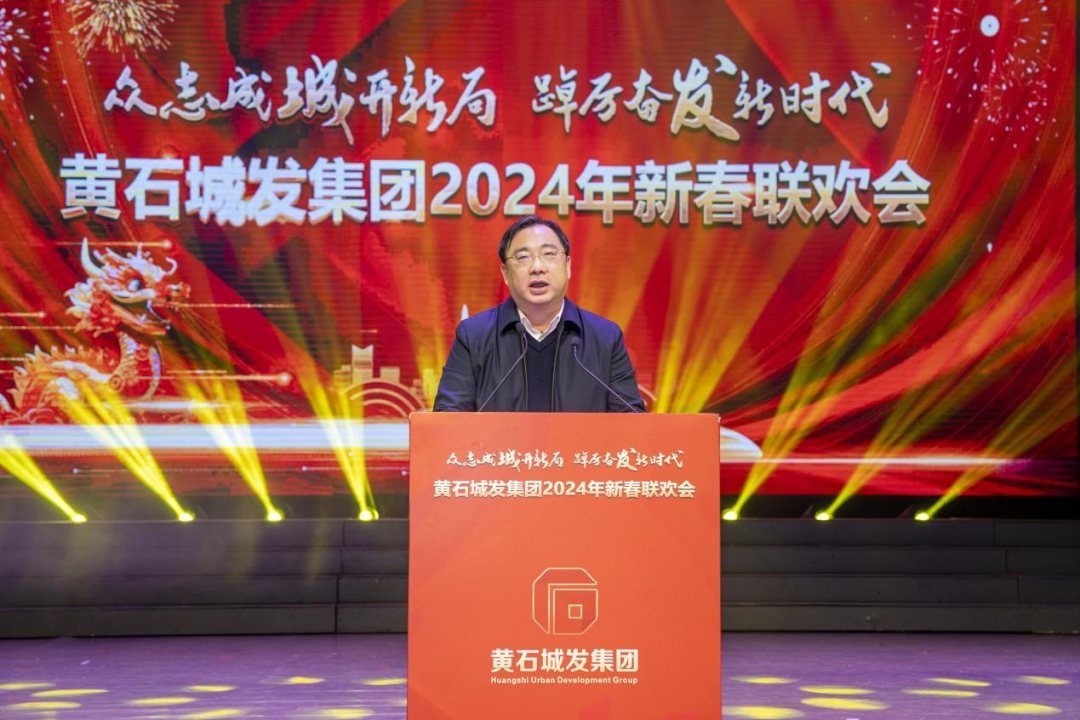 集團公司黨委書記、董事長程正棟致辭,向全體職工送上親切問候和新年祝福。他表示,2023年黃石城發集團在市委市政府堅強領導下,奮發有為,落實責任擔當、提升綜合實力、建設品質項目、深化改革創新、強化黨建引領,書寫了全年精彩。他希望,城發集團全體干部職工繼續錨定“雙千百十”目標,全力加快“五個城發”建設,堅定不移加強黨的全面領導,持之以恒聚力產業發展,馳而不息推進改革創新,堅持不懈筑牢民生保障,力爭2024年資產規模達到1800億、營收過100億、利潤超10億,為黃石打造武漢都市圈重要增長極作出新的更大貢獻。
